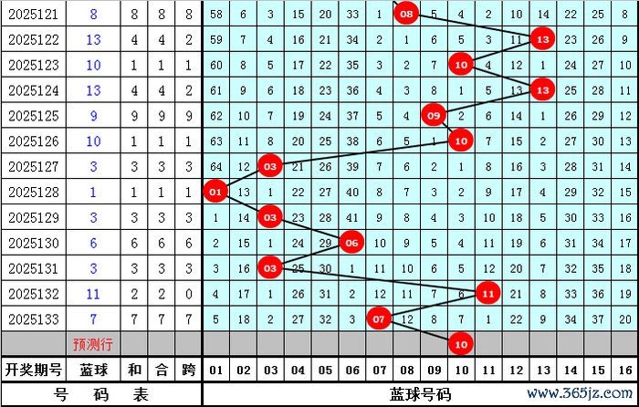 蓝球分析:旧年第134期蓝球奖号为16,开出1路蓝球,现在1路蓝球衔接出现2年,本年同时瞻望1路蓝球继续开出,温顺号码10。